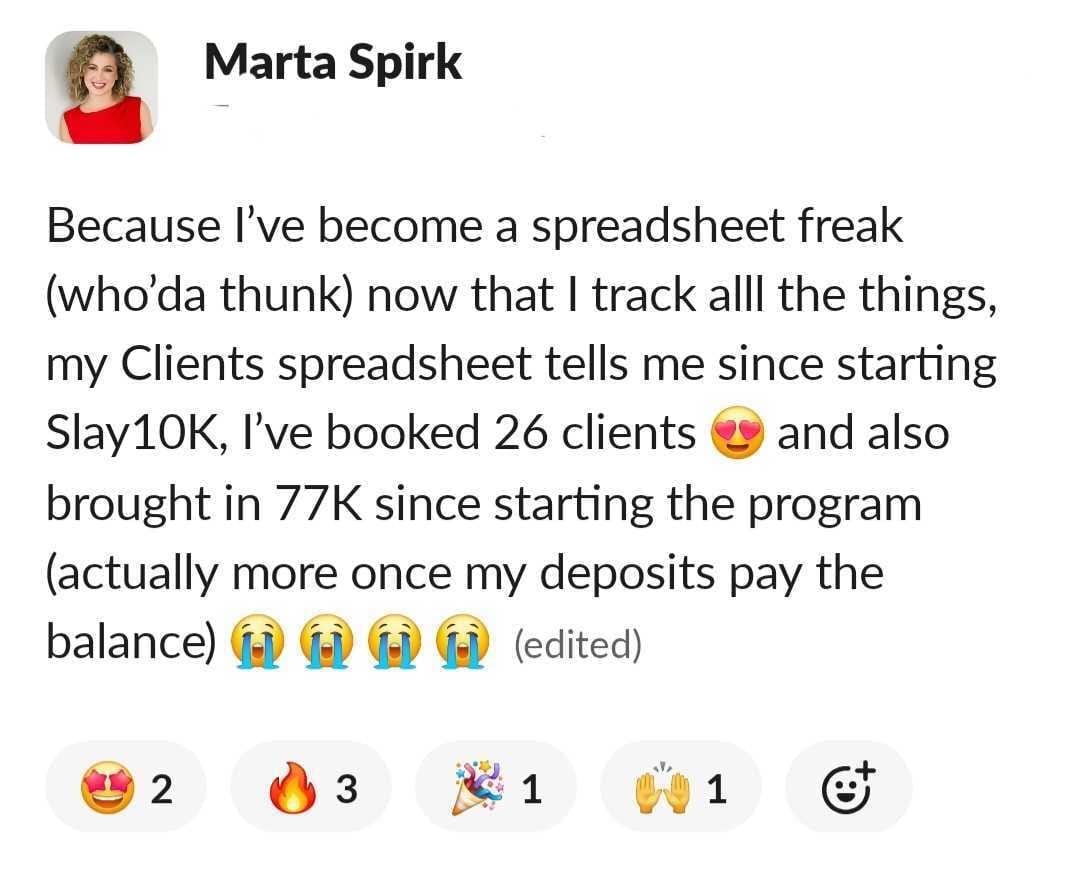 Created her high ticket offer & booked 7 sales calls in her FIRST week of Slay $10k